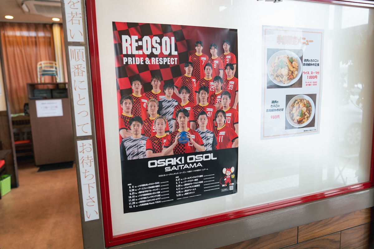 店内にはチームのポスターが飾られるなど、店主も大崎オーソル埼玉の熱烈なファンなのだとか。