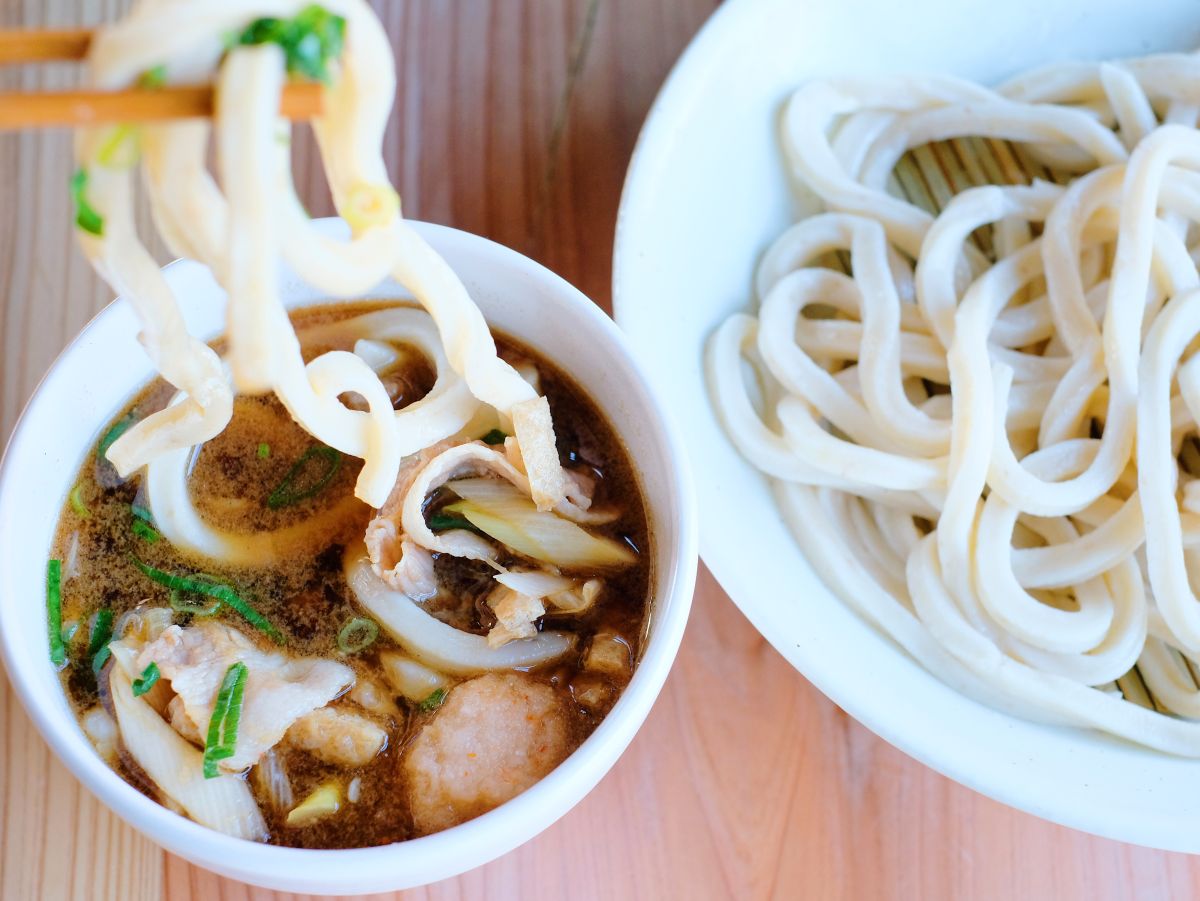 ヤクルトレビンズ戸田の選手もおすすめする、武蔵野うどんならではの極太で力強い自家製麺と具材たっぷりの濃厚な肉汁つけ汁が看板のお店です。