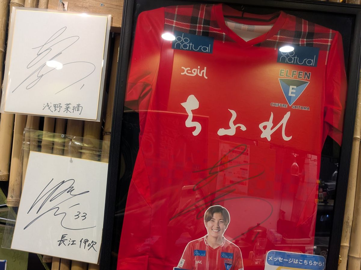 ちふれASエルフェン埼玉の選手も来店し、店内にはサインやユニフォーム、ポスターが飾られていて、ファンには嬉しい空間となっています。