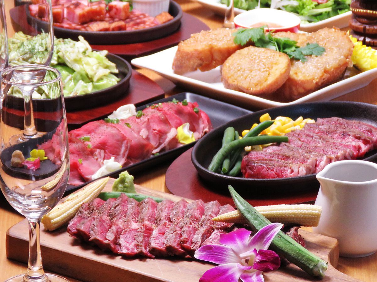 肉料理は単品でも楽しめるほか、飲み放題付きコースもあり、試合の後のお食事などにも最適です。