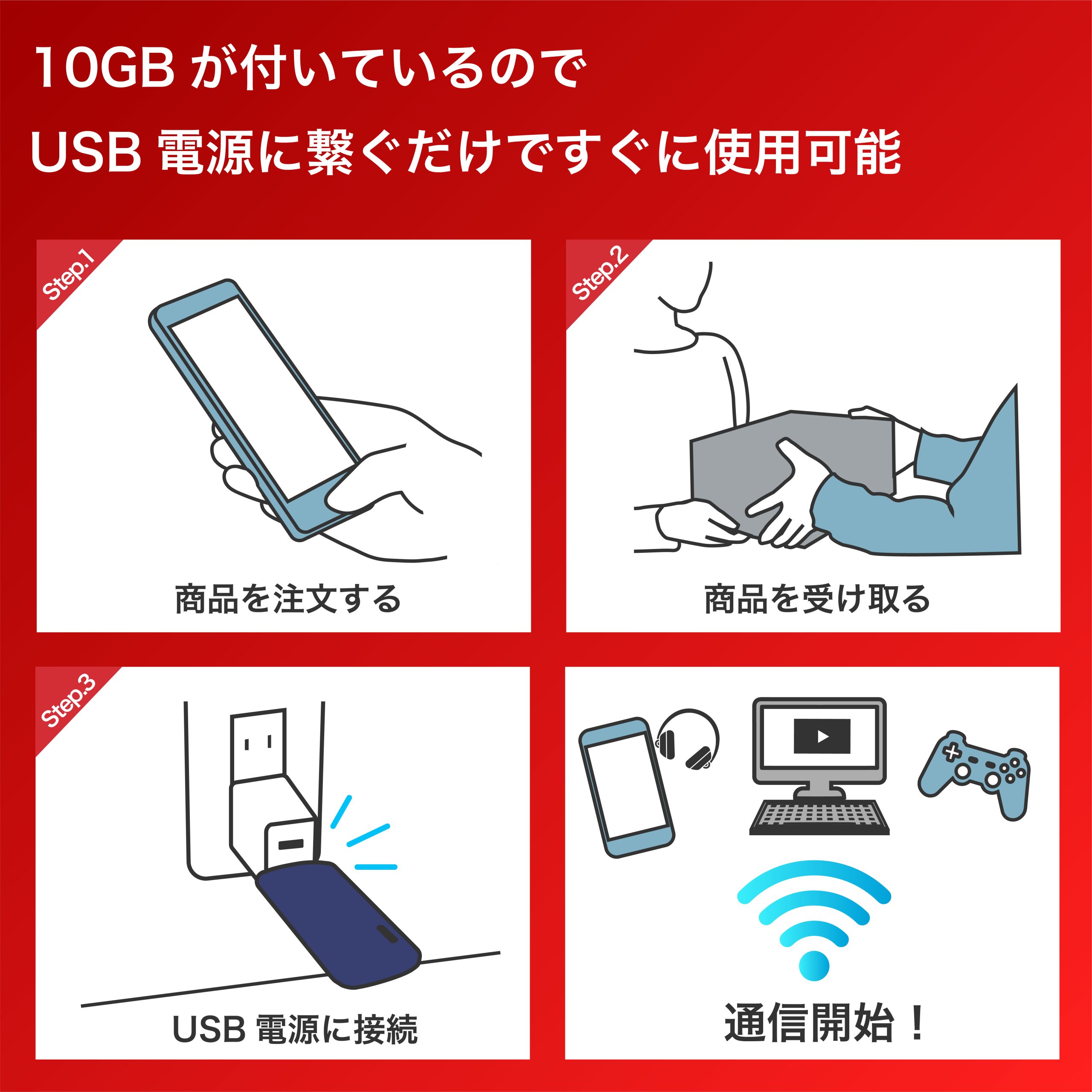 ※本製品は本体と10GB分のプリペイドカードが付属しております。説明書をご確認いただき、専用サイトより本体へギガをチャージしてご使用ください。