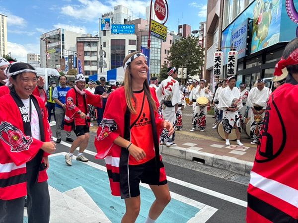 9月27日、『浦和まつり 第44回北浦和阿波おどり』に、三菱重工浦和レッズレディースのタンチュリエ ローリー選手が原田冬彦浦和区長をはじめ、浦和区職員のみなさま、浦和レッズのホームタウン本部のスタッフたちと一緒に参加し、はじめて阿波踊りに挑戦しました。