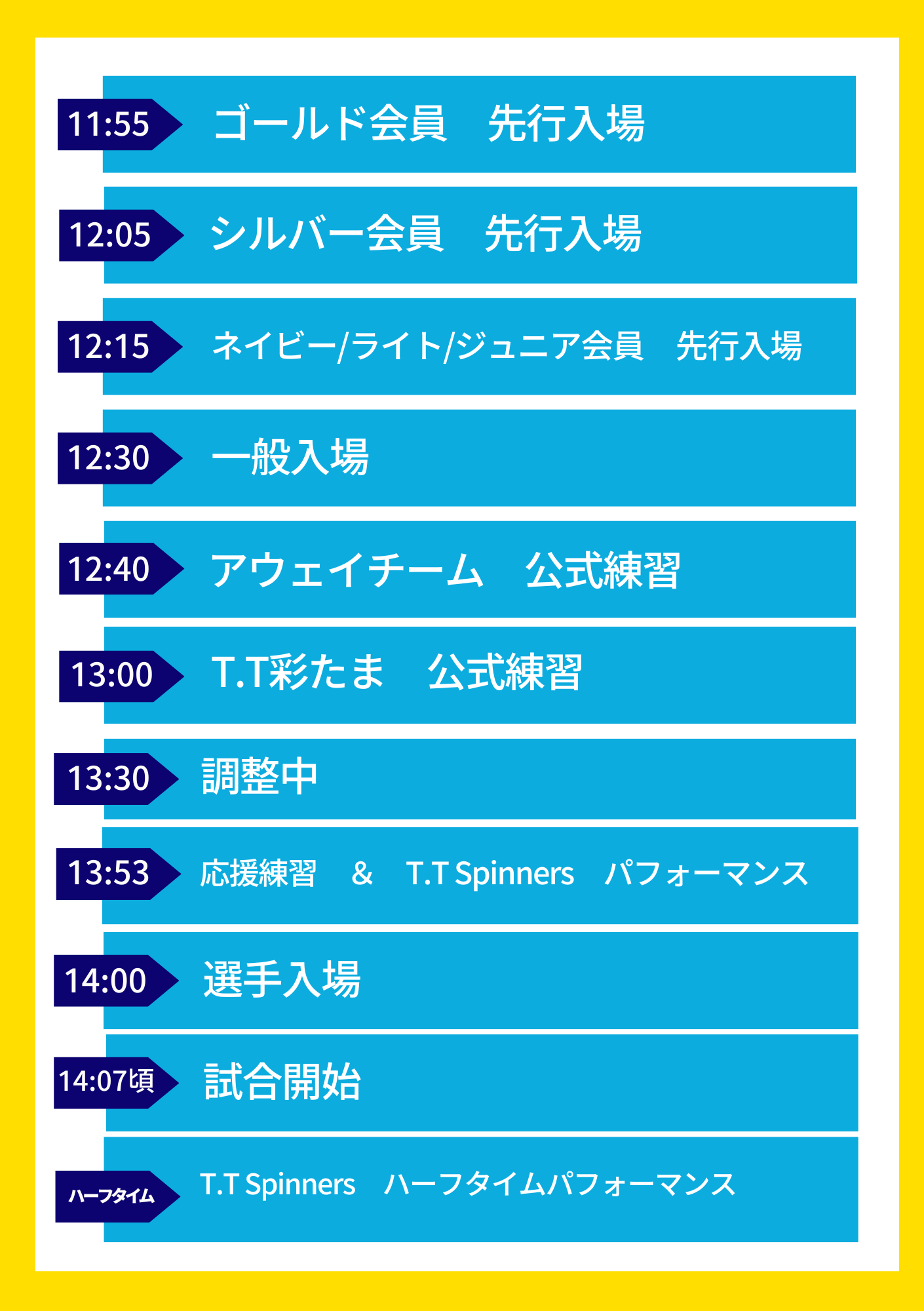 ・T.T彩たまホームマッチでは、監督・選手(ホーム・アウェイ問わず)のサイン・写真対応は、特定のイベント開催時のみ行わせていただきます。それ以外のサイン・写真の対応はご遠慮いただいております。予めご了承ください。