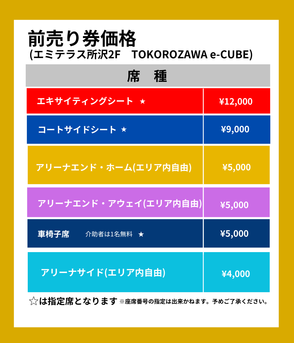 ・T.T彩たまホームマッチチケット引換券は、座席数の関係で所沢開催では対象外となっております。