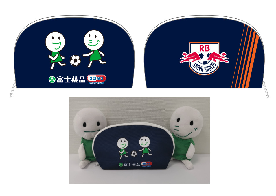 毎年恒例! プレゼンツマッチ開催を記念し、今年はオリジナルポーチを先着8,000名さまにプレゼント! 富士薬品マスコットキャラクターのフジちゃんがデザインされた使い勝手抜群のポーチです!・配布時間:11:00~