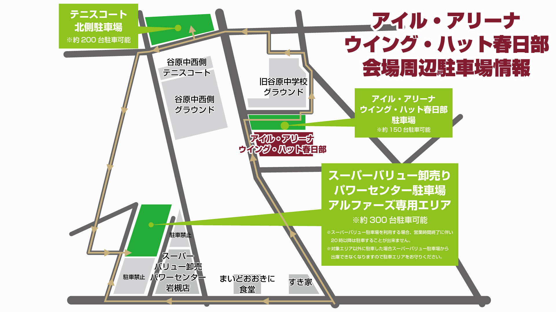 アイル・アリーナ ウイング・ハット春日部ではお車でご来場いただけます。