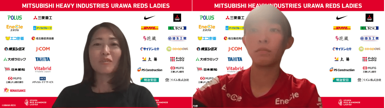 三菱重工浦和レッズレディースが開催する第2回オンライントークショーが実施され、今回は安藤梢選手と丹野凜々香選手が登場しました。丹野選手はユニフォームで登場するほどの意気込み!MCの安田美香さんの進行のもと、ピッチ上では見られない2人の素顔や爆笑エピソードが次々と飛び出し、参加したファン・サポーターにとっては、終始笑いの絶えない特別な時間となりました。