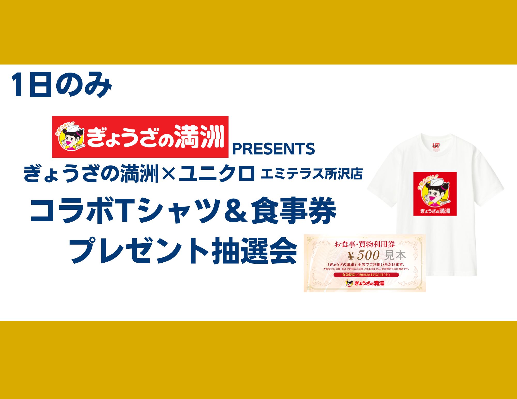 ぎょうざの満洲×ユニクロ エミテラス所沢店コラボTシャツ(サイン入り)とお食事券(1000円分)・サイン入り色紙セットをそれぞれ5名様へプレゼント!