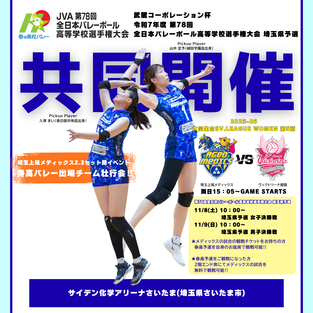 埼玉県春高予選の男女決勝戦が、埼玉上尾メディックスの試合前に開催されます!!