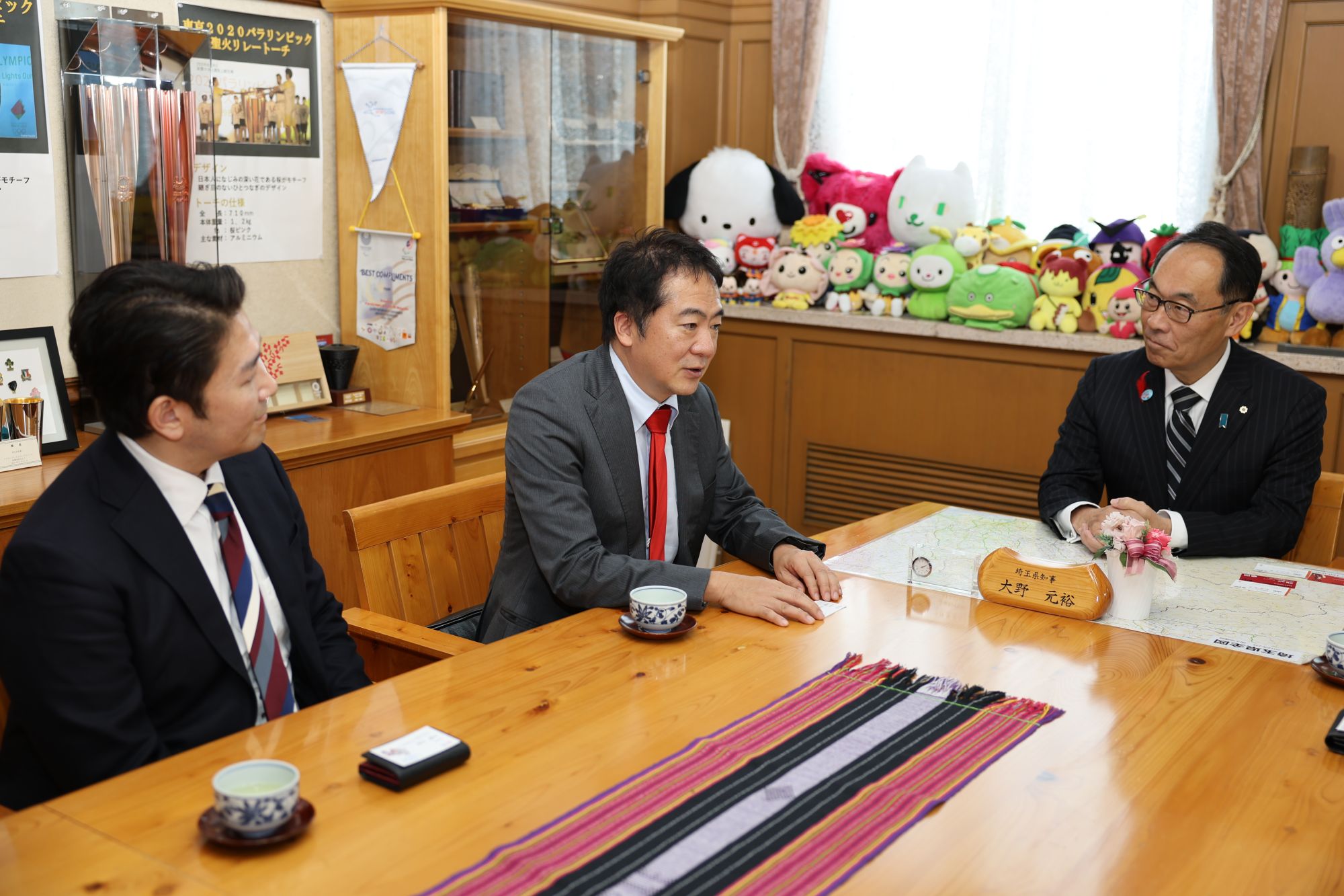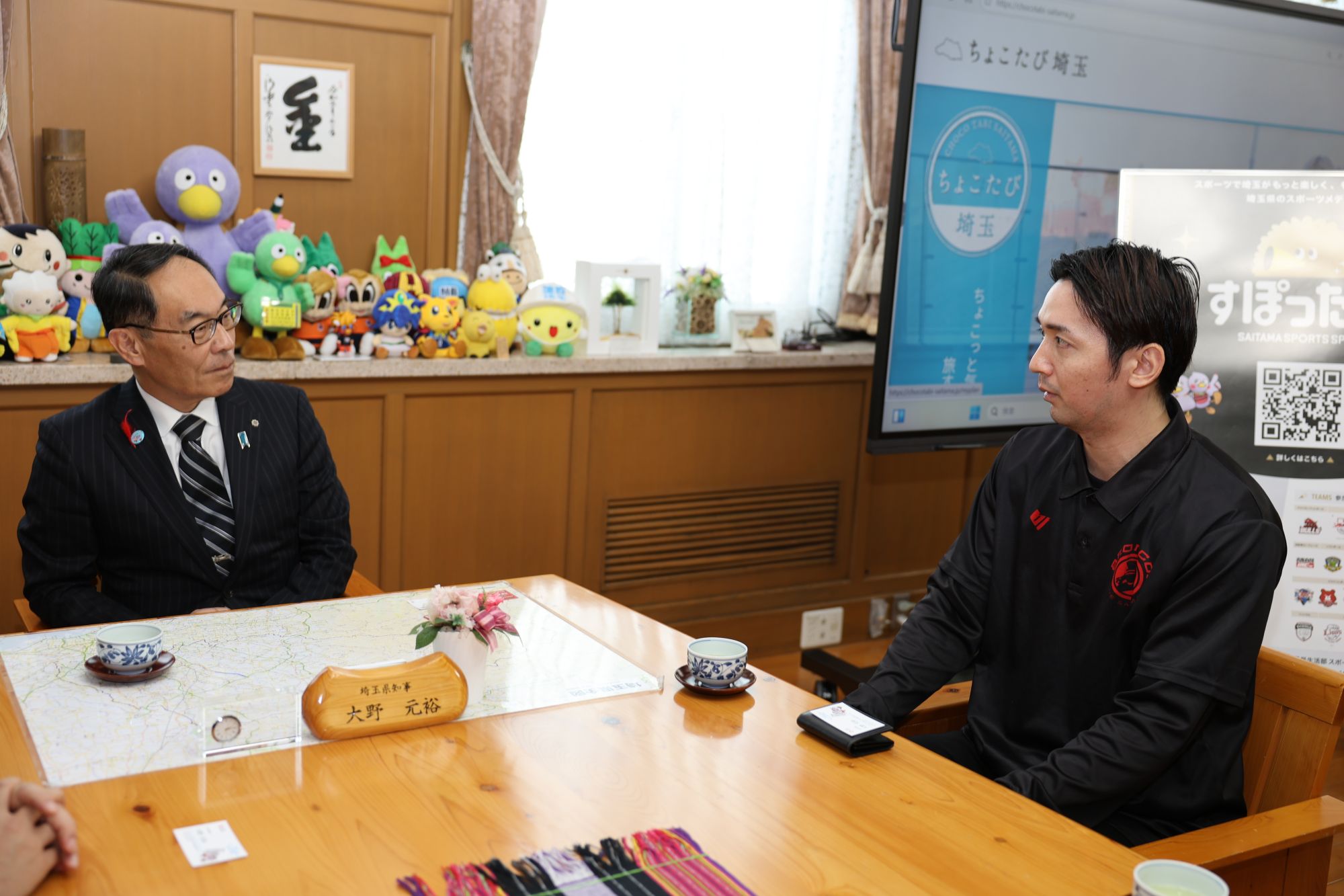 大野知事は「B.LEAGUE PREMIER参入に向けての展望、今シーズンへの意気込みを伺い頼もしく思う。しっかりと皆さんを応援していきたい。B3リーグ優勝を期待している。チームが強くなればファンの方もたくさん試合に来られる。日本を代表するチームになるためにがんばってほしい。」とエールを送った。