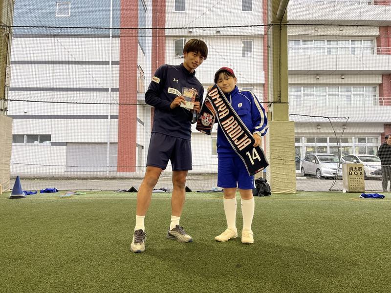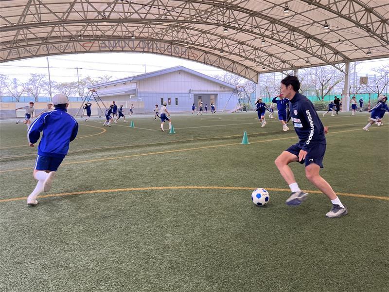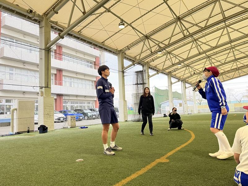 去年もお邪魔しましたが、男女問わず元気な子が多い印象で、増やし鬼ごっこ、ドリブル対決、ミニゲームを行いましたが、どれも積極的に参加してくれて僕も全力で楽しむことができました。また、先生方も一緒にプレーしていただき、すごく盛り上がった印象です。