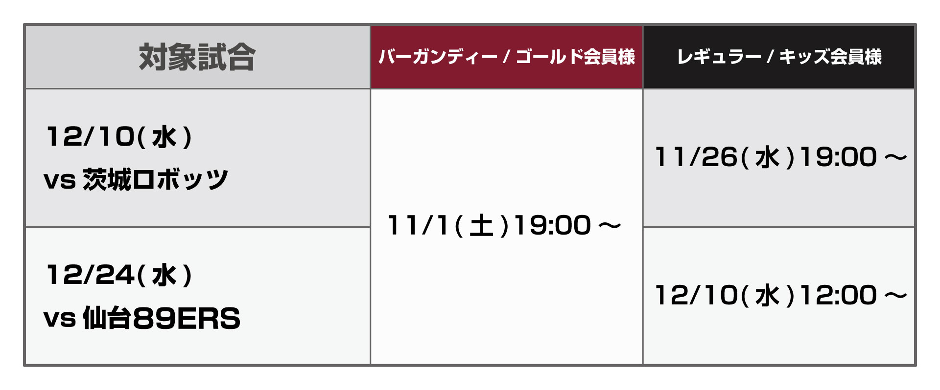 12月開催試合チケット販売概要