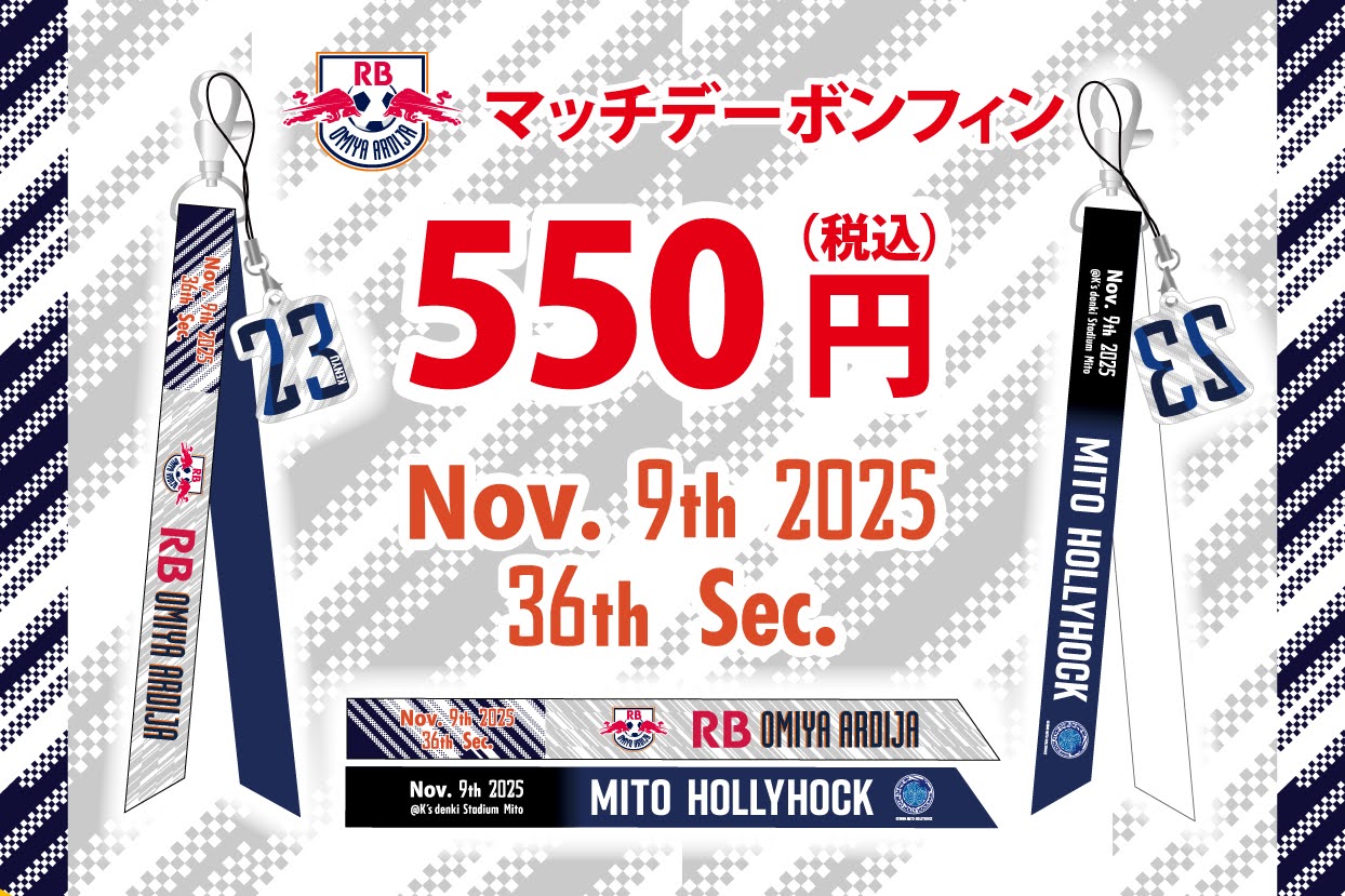 11月9日(日)にケーズデンキスタジアム水戸で開催される、2025明治安田J2リーグ第36節・水戸ホーリーホック戦にて、RB大宮アルディージャオフィシャルグッズの出張販売を行います。皆さまのご来店をお待ちしています!