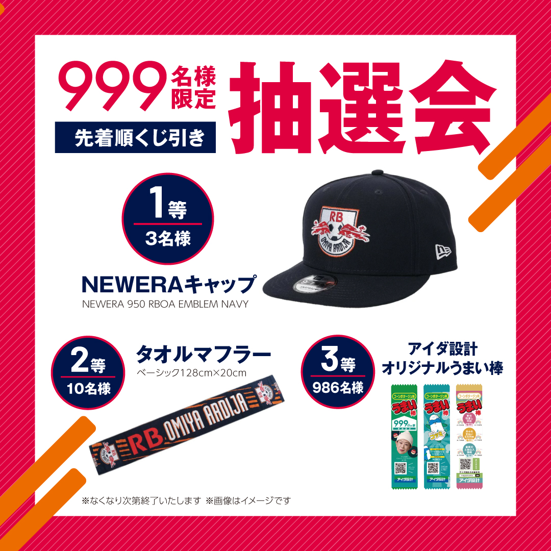 先着999名さまにご参加いただける、RB大宮アルディージャのNEWERAキャップやタオルマフラーが当たる抽選会を実施します。当日入場ゲートで配布されるアイダ設計チラシをブースにてご提示ください。・実施時間:11:00~