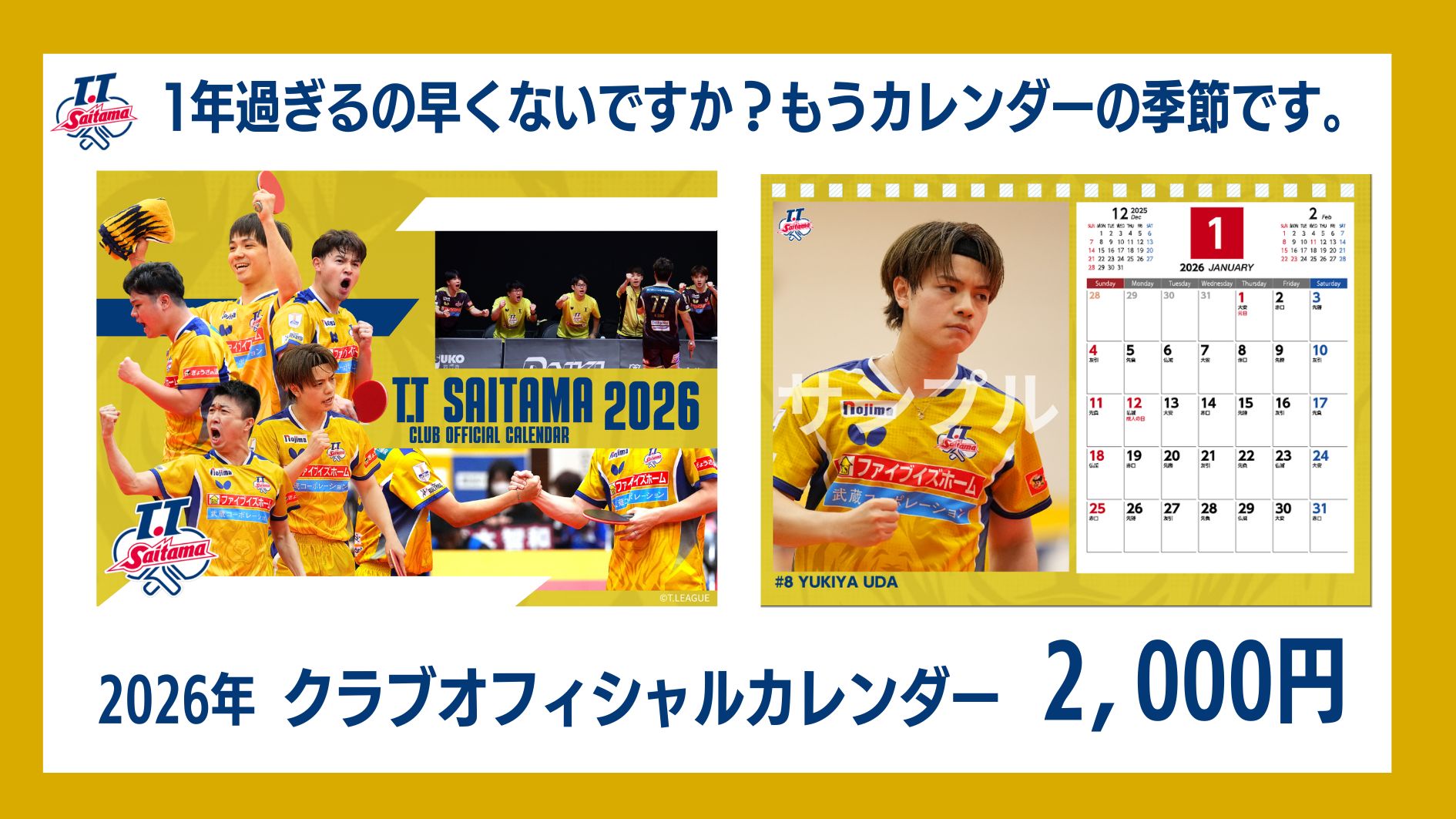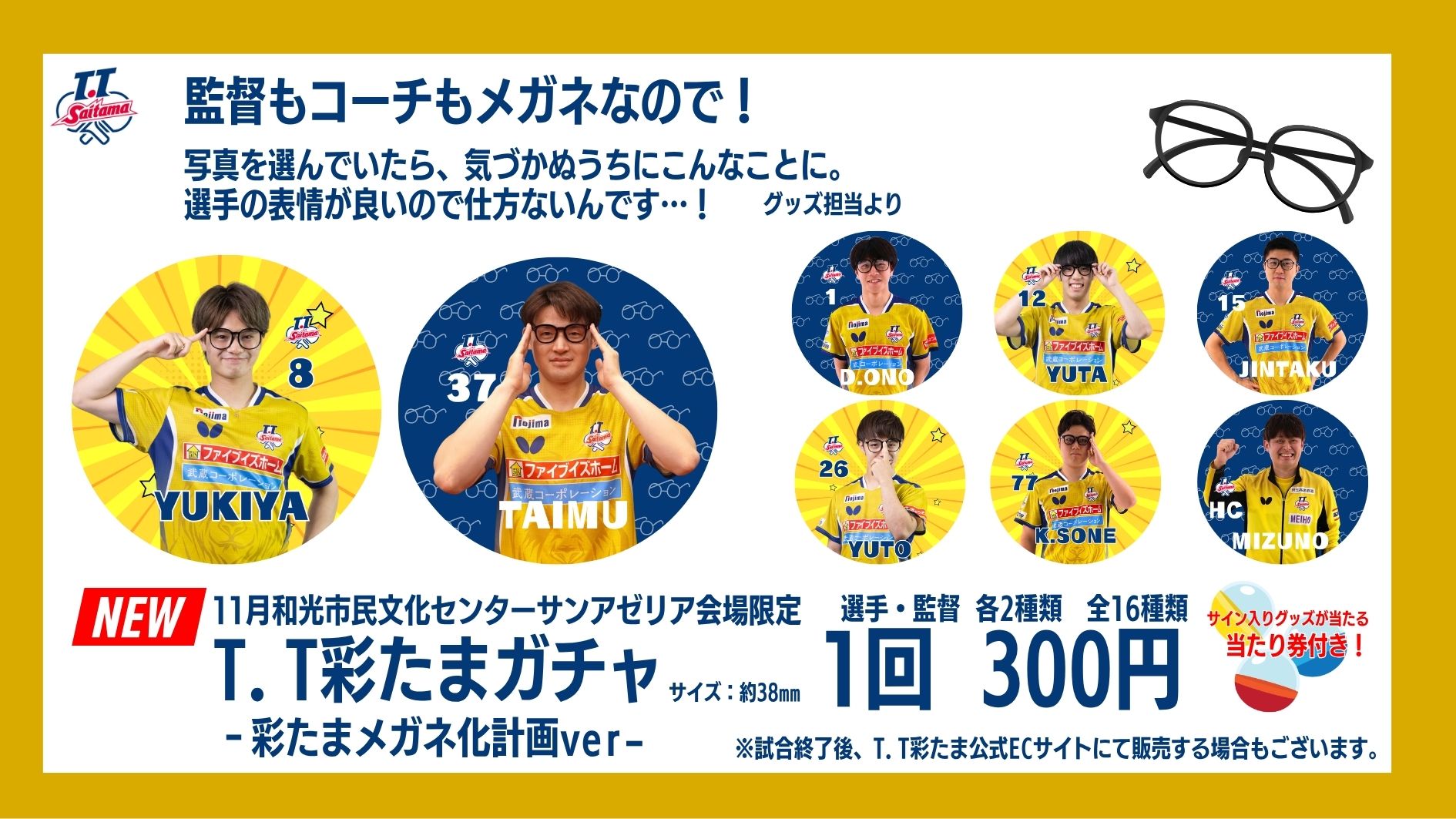 2025.11.24 T.T彩たま 【11月29.30日和光市民文化センターサンアゼリア】グッズ販売情報 #T.T彩たま オリジナルサイトで読む ★New Items ◆11月和光市民文化センターサンアゼリア・会場限定 T.T彩たまガチャ -彩たまメガネ化計画ver- ◆ ◆2026年クラブオフィシャルカレンダー◆ 卓上カレンダーです! その他の商品もございます!ぜひ会場内グッズブース(ホワイエ)までお越しください! セット購入がお得! ホームマッチ情報は画像をタップ▼ 記事一覧に戻る