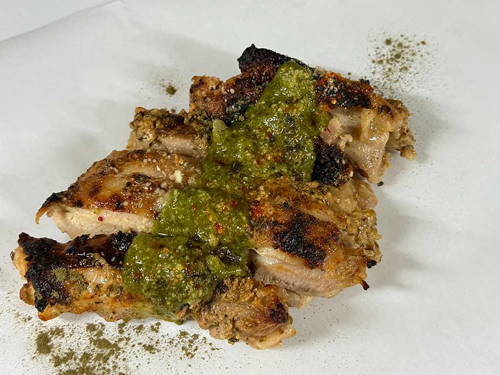 ジューシーなチキンにバジルソースの爽やかな香りをプラス。