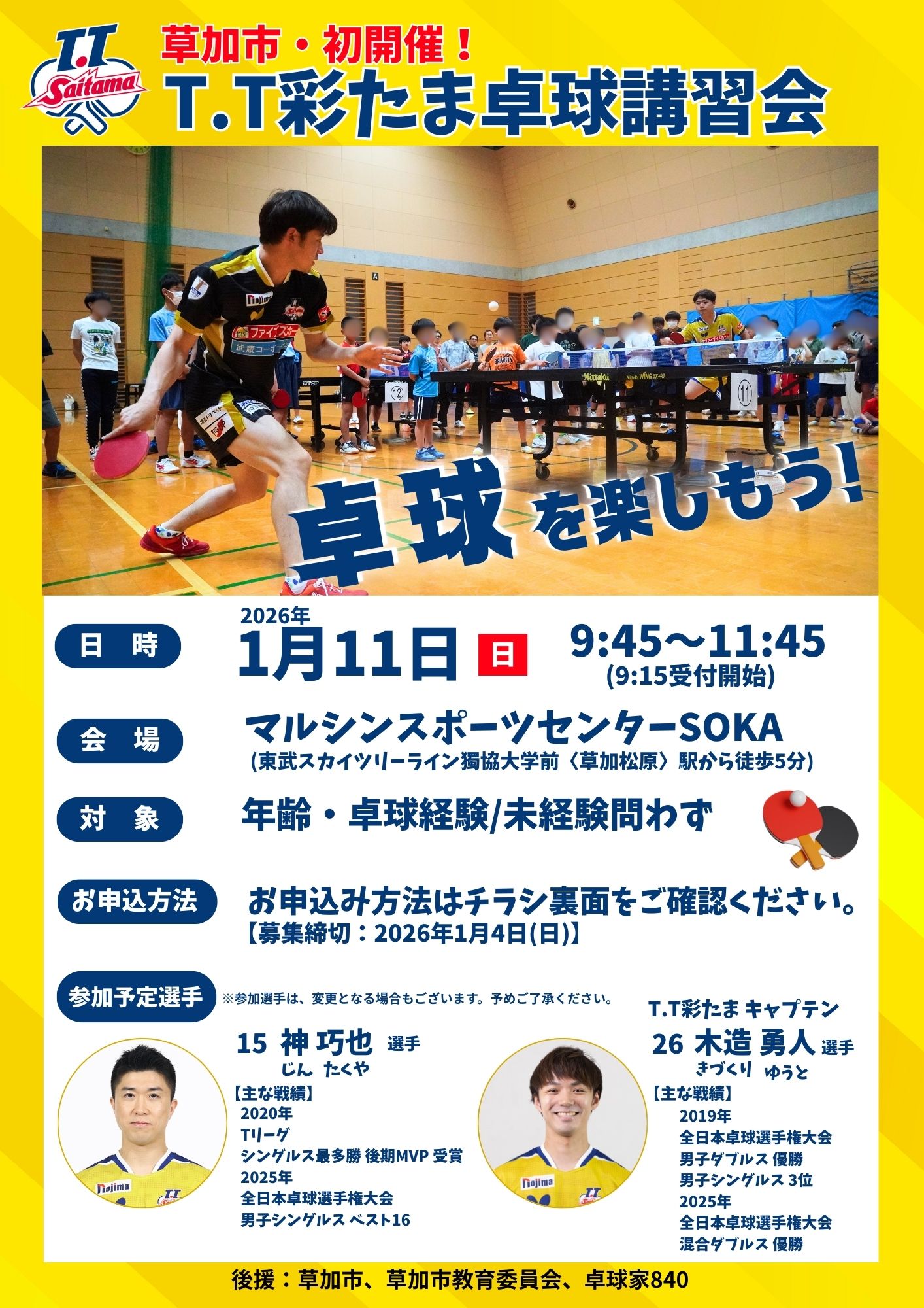 T.T彩たまからは、神 巧也選手と木造勇人選手が参加予定です!