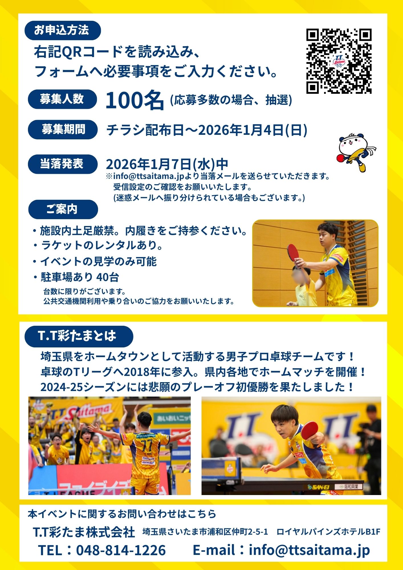 ※info@ttsaitama.jpより当落メールをお送りいたします。
