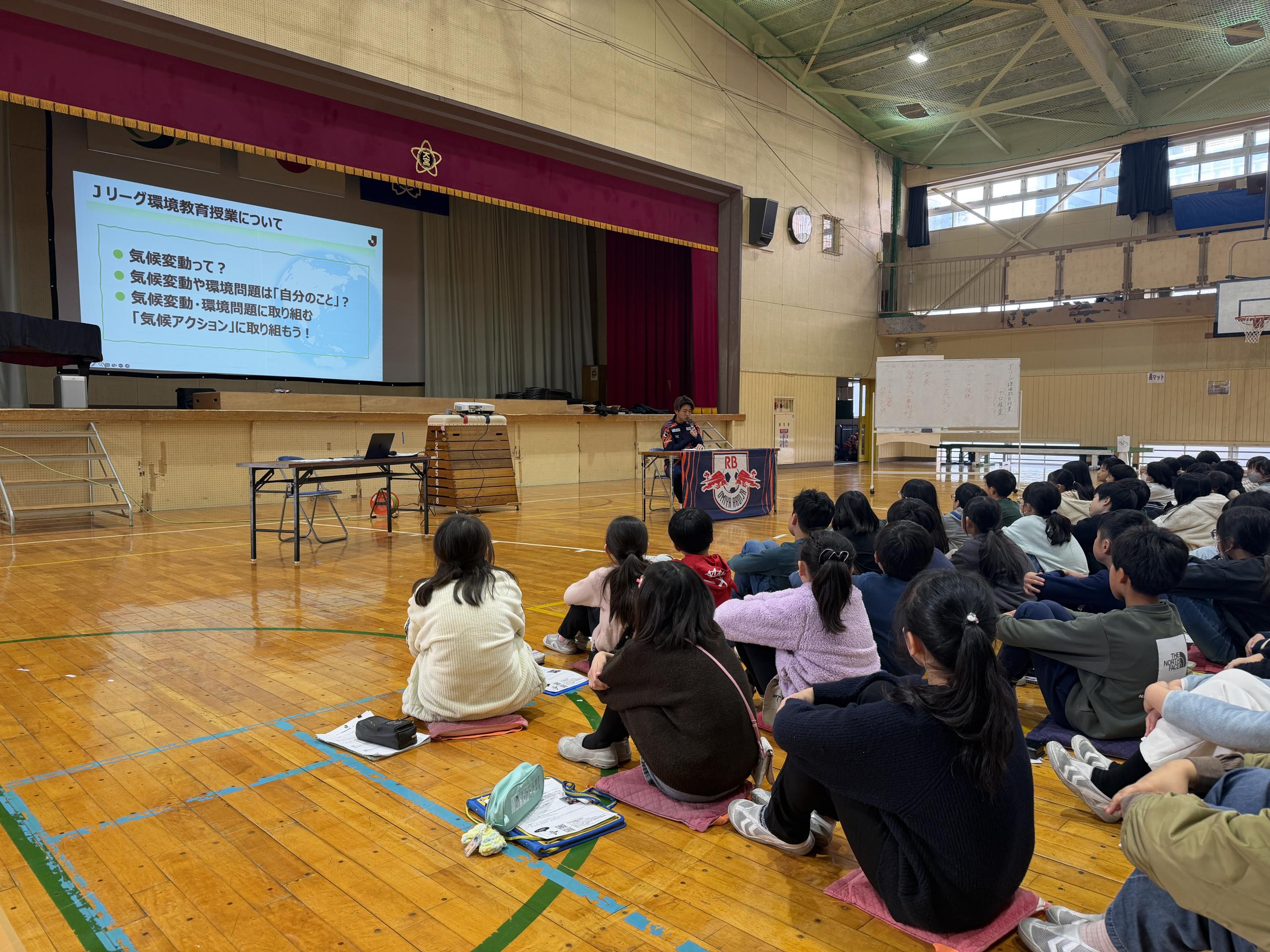 12月10日(水)、さいたま市立大宮小学校にて、「Jリーグ環境教育授業」を実施しました。この授業は、子どもたちが気候変動の現状や原因を学び、日常生活で取り組める行動を考えることを目的としています。