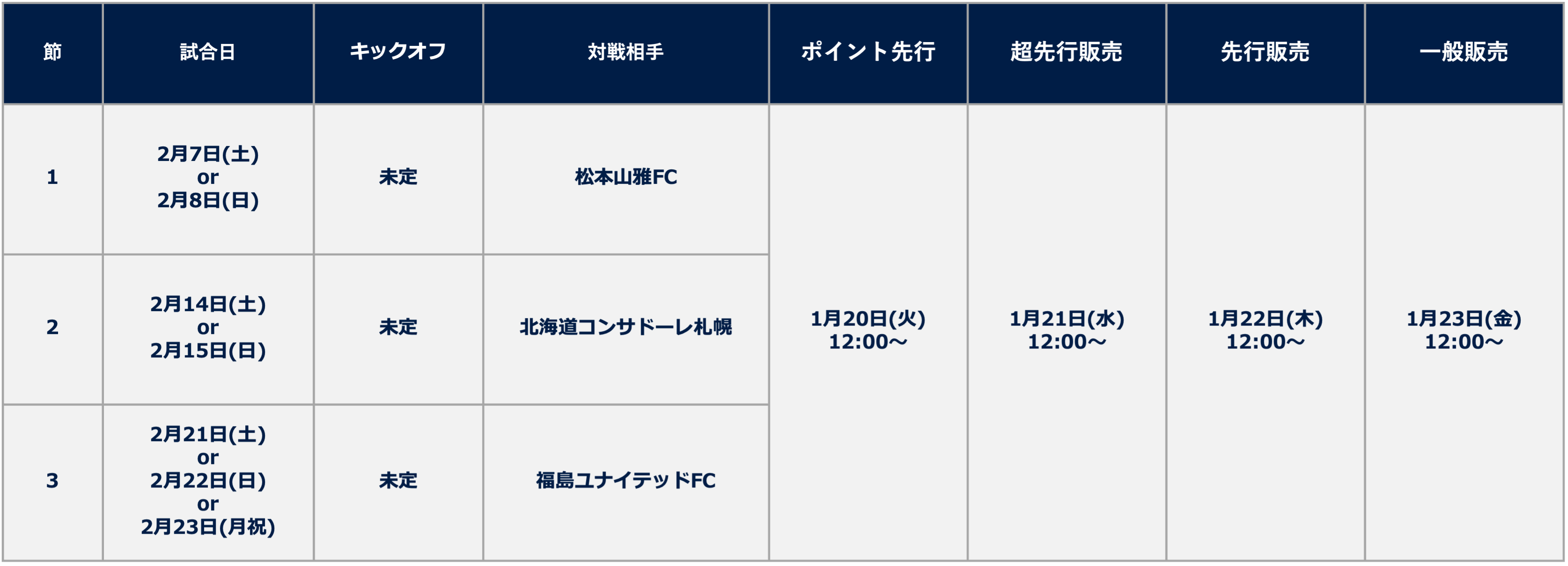 ※第6節以降の販売スケジュールについては、後日クラブ公式サイトにてお知らせします。