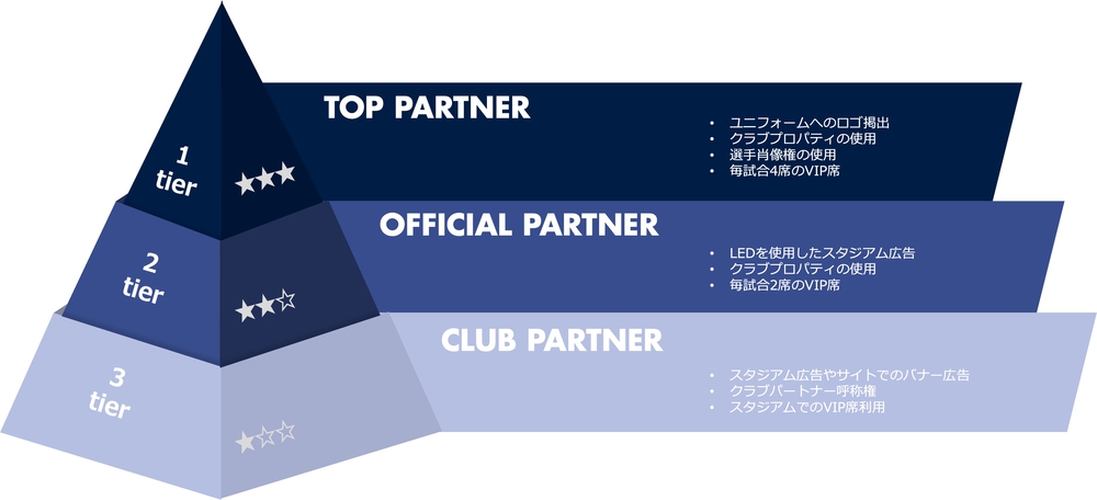 地域社会に根差したクラブへ支援することで、企業の社会的責任(CSR)を果たすだけでなく、ブランド価値向上にも寄与します。パートナーシップ体系