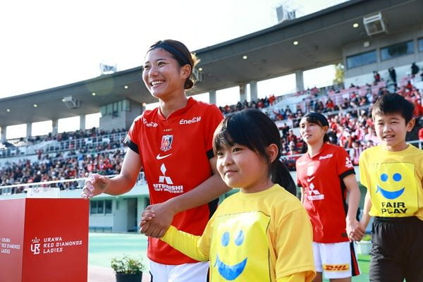 レッズレディースの選手と手をつないで、浦和駒場スタジアムのピッチに入場できるチャンスです。