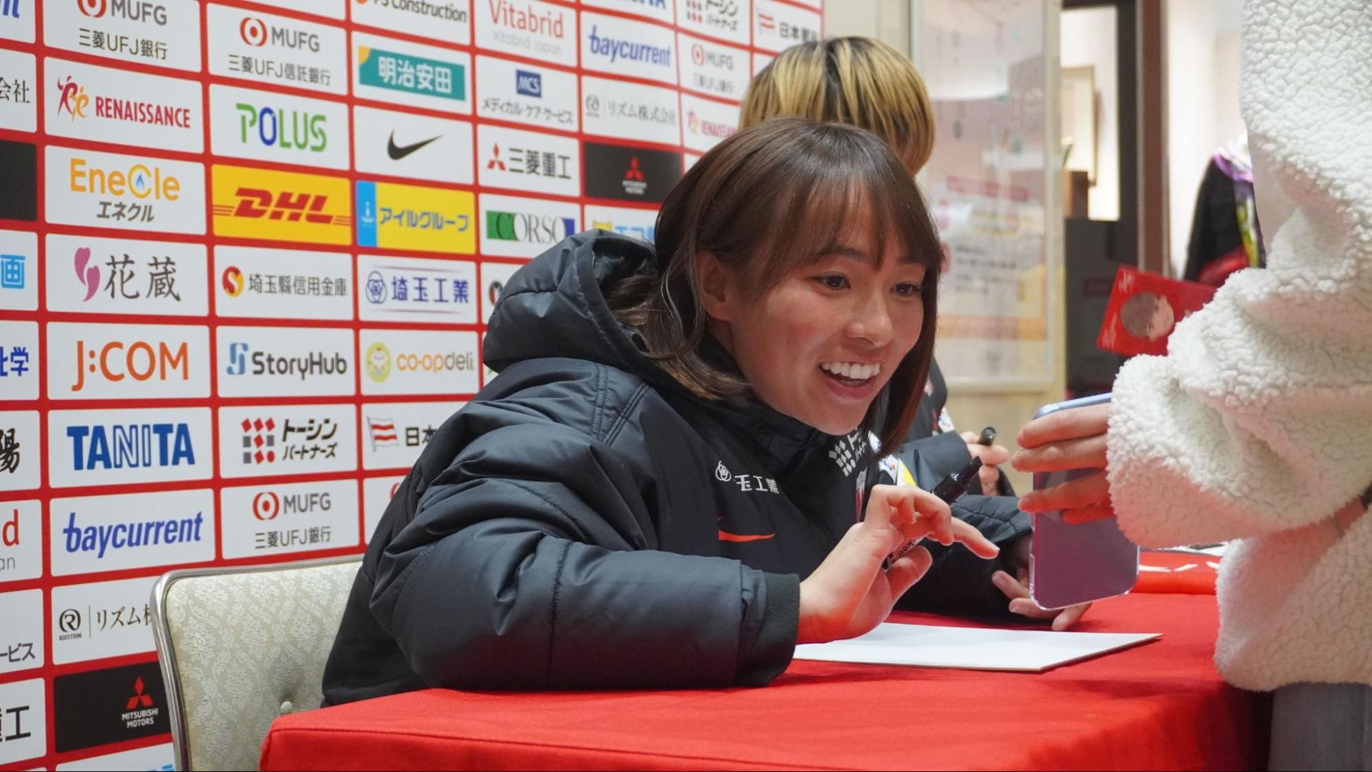 「サイン会にお越しいただき、本当にありがとうございました。こういった機会は中々ない中で、ファン・サポーターのみなさんと間近で接することができて、私自身もたくさんのパワーをいただきました。今週末にはクラシエカップを控えています。ぜひ浦和駒場スタジアムへ足を運んでいただき、ともに戦っていただけたら嬉しいです」