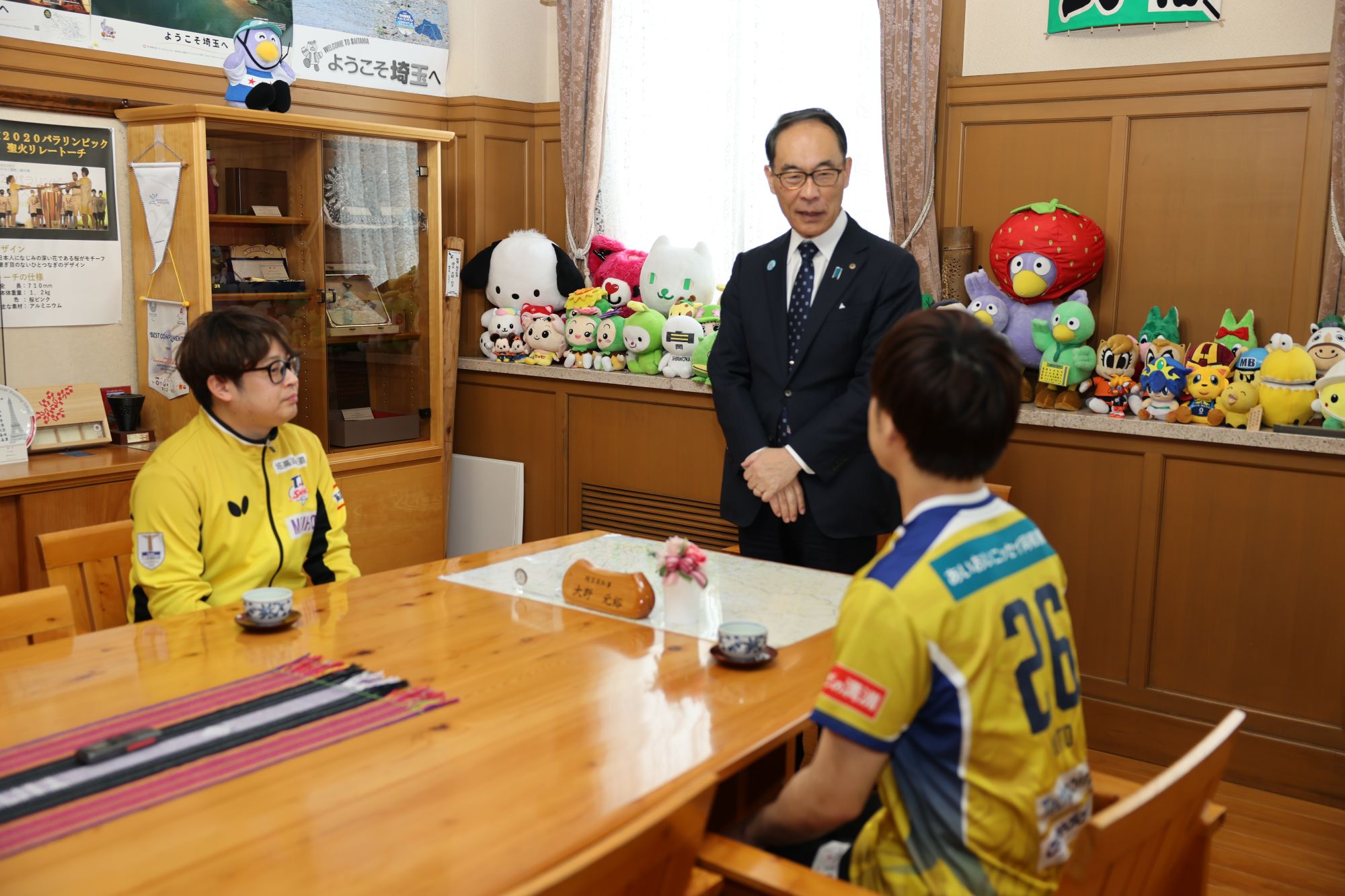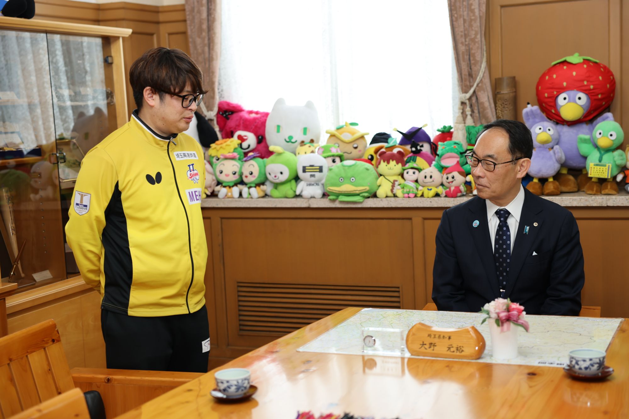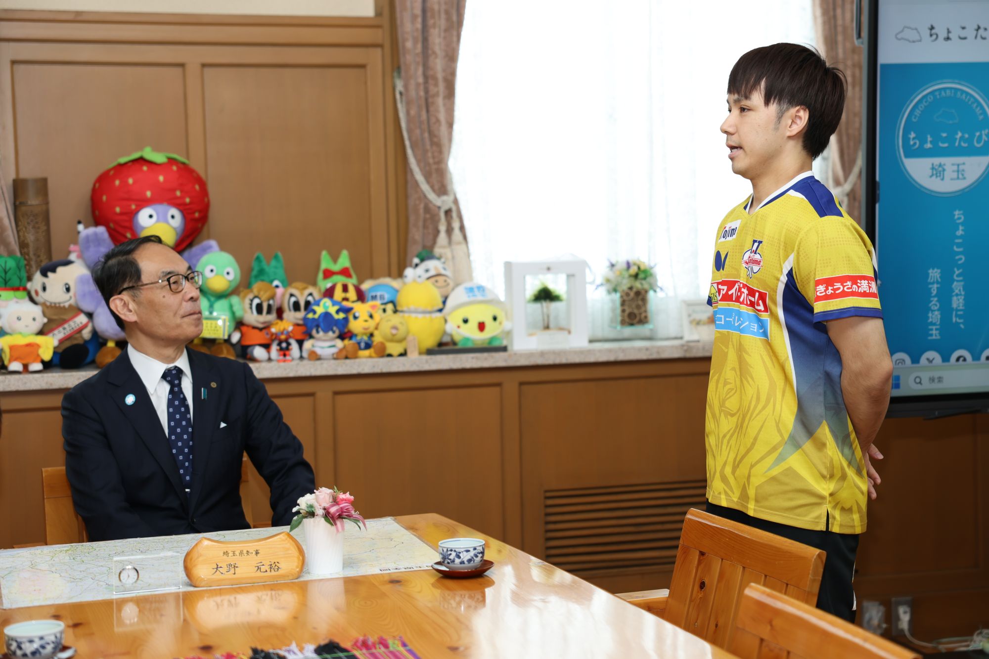 大野知事は「2年連続でプレーオフに進出し、埼玉県民としては誇らしい限りだ。セミファイナルでの惜敗は大変悔しいが、埼玉県民として常にT.T彩たまを応援している。来年のこの時期の報告を楽しみにしている。充実したオフを過ごして、来年に備えていただきたい。」とエールを送った。