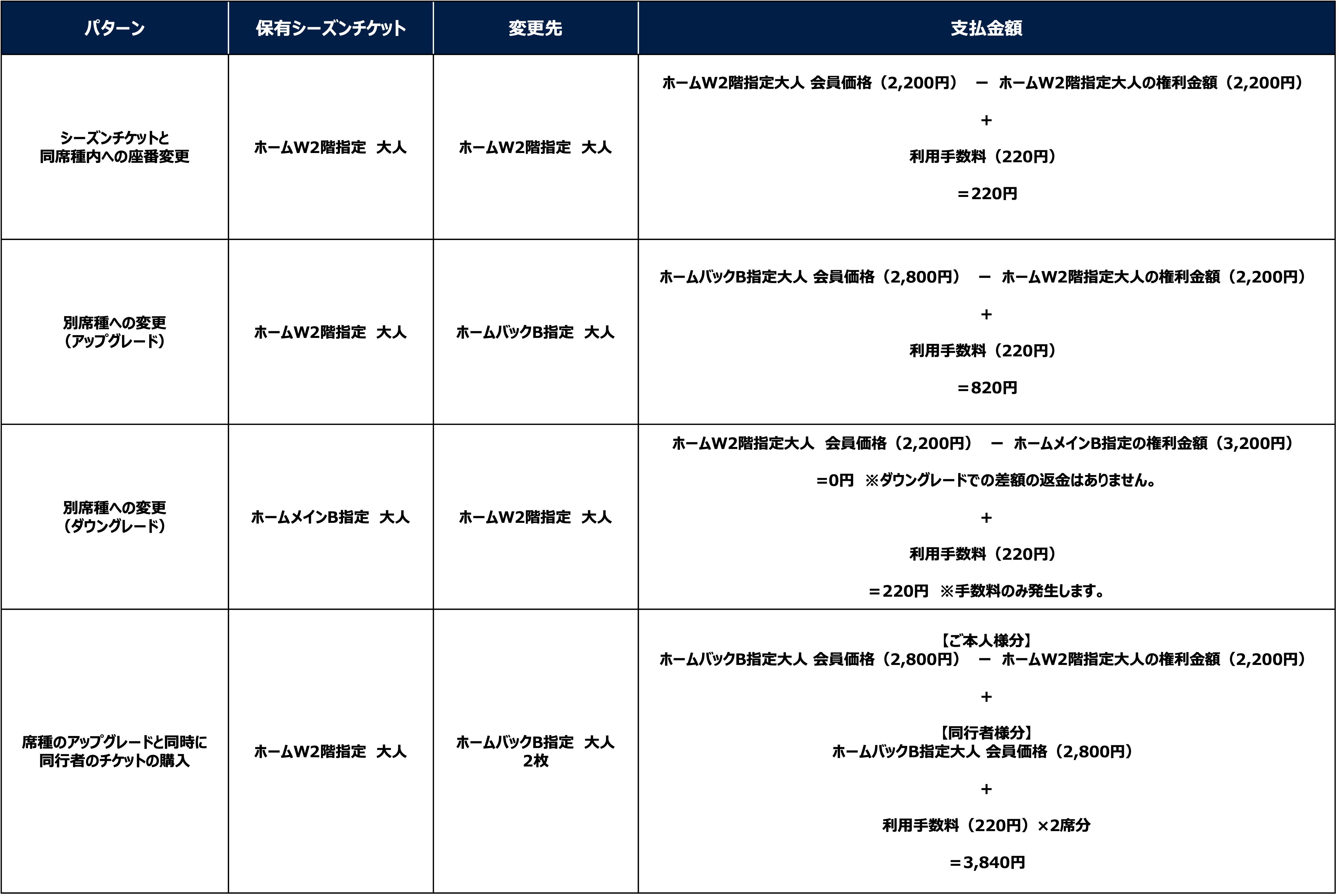 ※シーズンチケット席変更サービスと同時に同行者のチケットを購入する場合は、同行者の分も利用手数料220円が発生します。