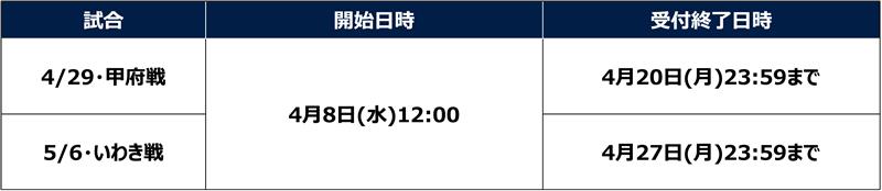 例) 4/29・甲府戦に対して、5/6・いわき戦の権利分を利用することは不可となります。